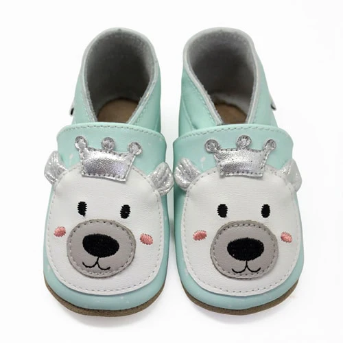 Ce modèle de chaussons bébé en cuir souple montre un ours polaire dans toute sa majesté !