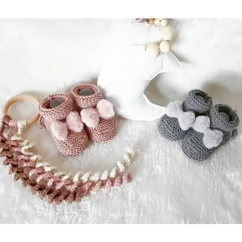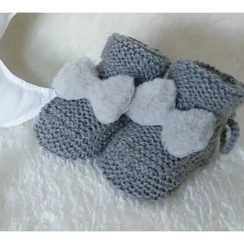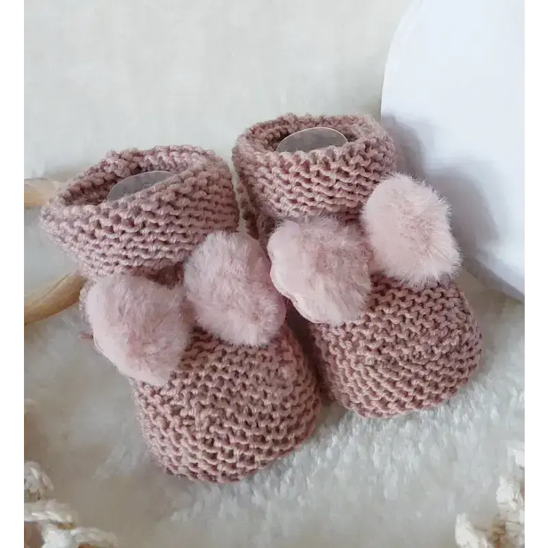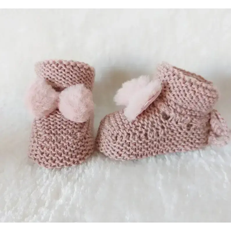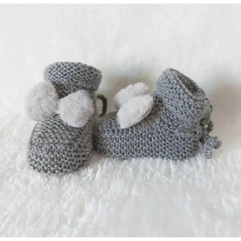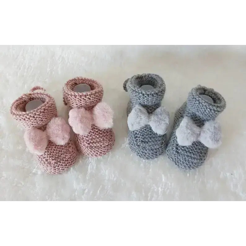 Trésor en Tricot – Chaussons Bébé en Laine et Cachemire avec Nœud en Fausse Fourrure