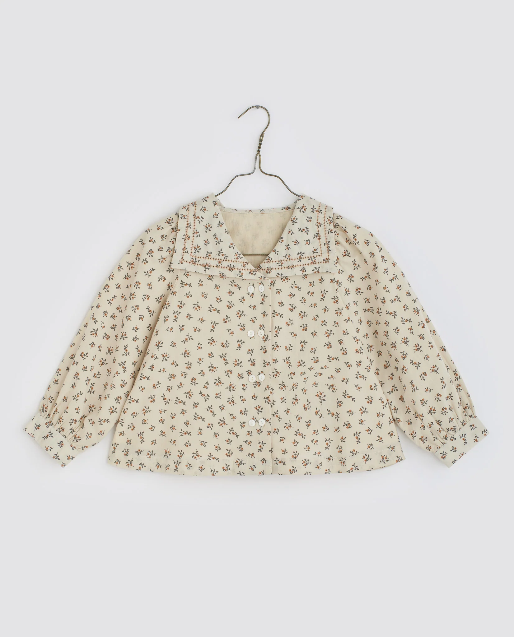 Un beau chemisier au style vintage et original comme on les aime ! La blouse Primrose présente un double boutonnage sur le devant, un large col de style marin souligné par une double rangée de points. La blouse est doublée d’un voile de coton fin. Vous pouvez l’associer avec nos bloomers ou pantalons unis.