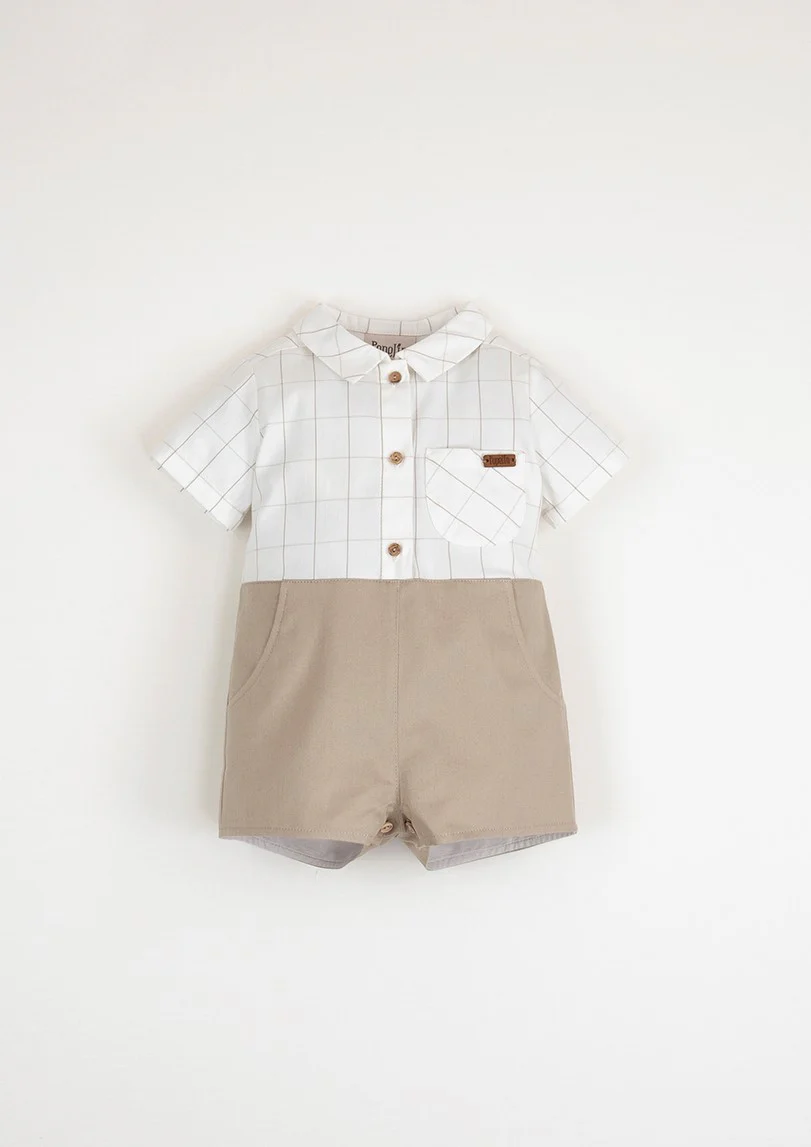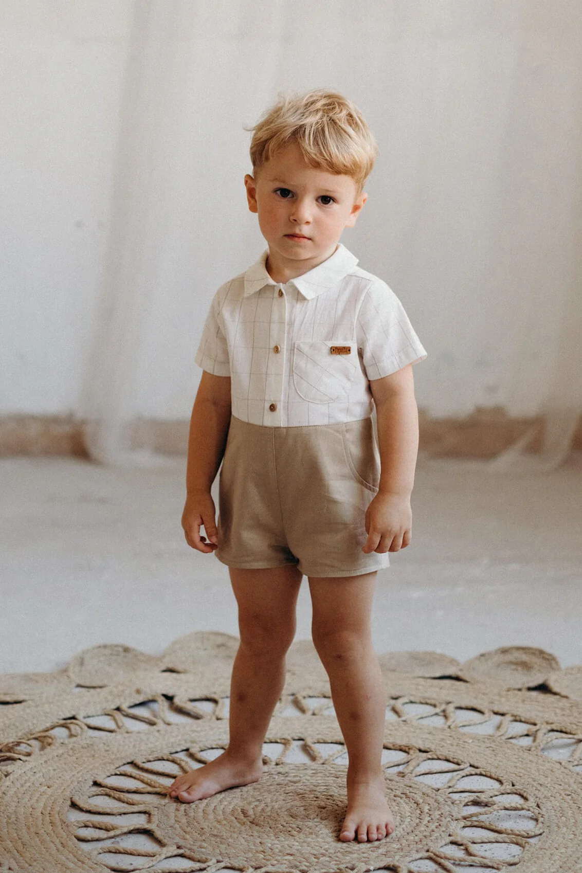 Allier élégance et praticité c’est possible avec la combinaison courte Nils ! Une pièce 2 en 1 en deux tons : haut style chemise avec poche, de fins carreaux et bas avec une coupe short dans un beau beige. Ouverture par boutons en bois sur le devant et au niveau de l’entrejambe.