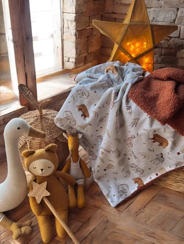 -La Couverture « Petite Marmotte » d’environ 65x80cm, idéale pour les voyages en cosy.