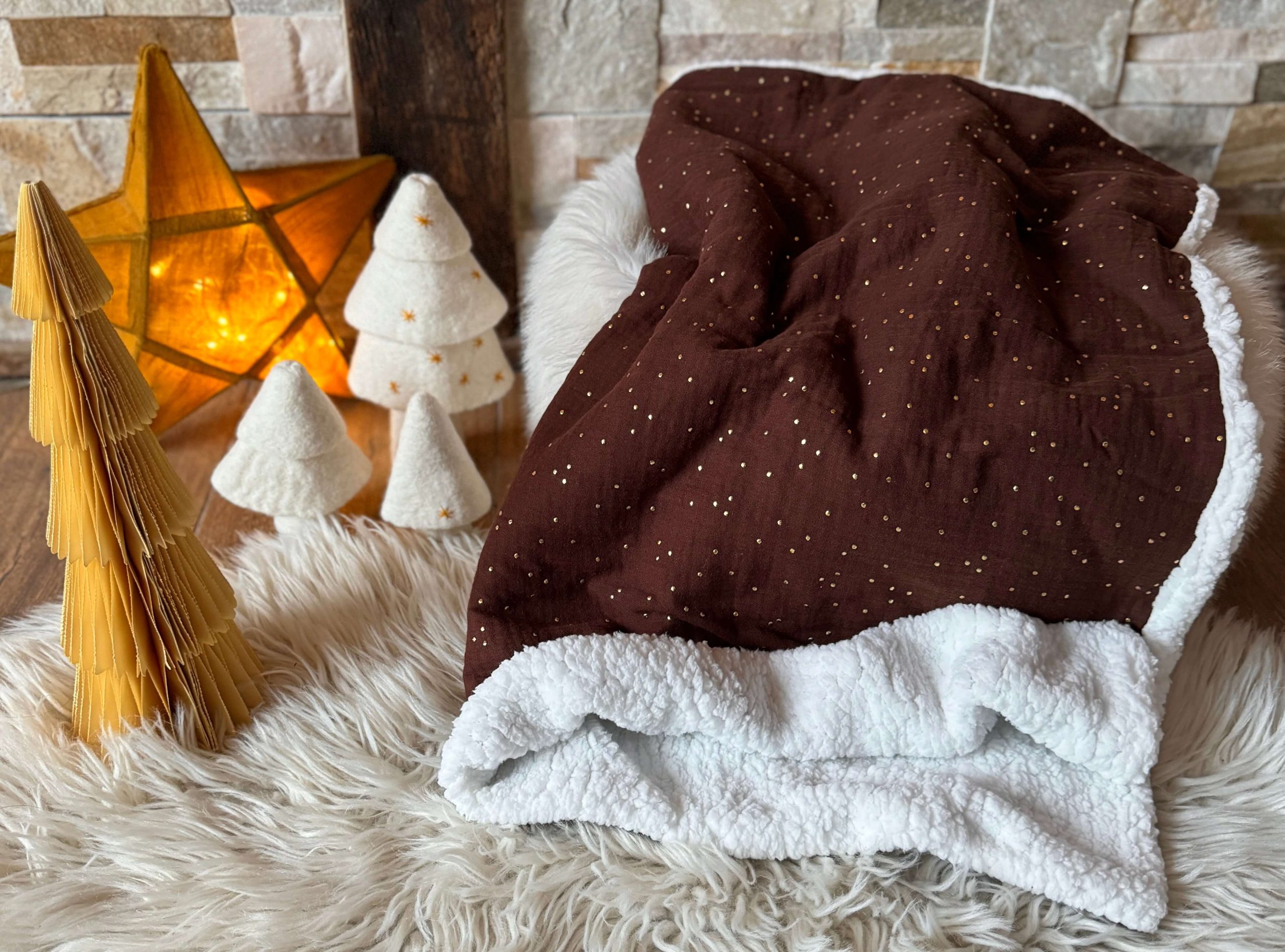 Couverture Double Gaze à Pois Dorés / Cacao