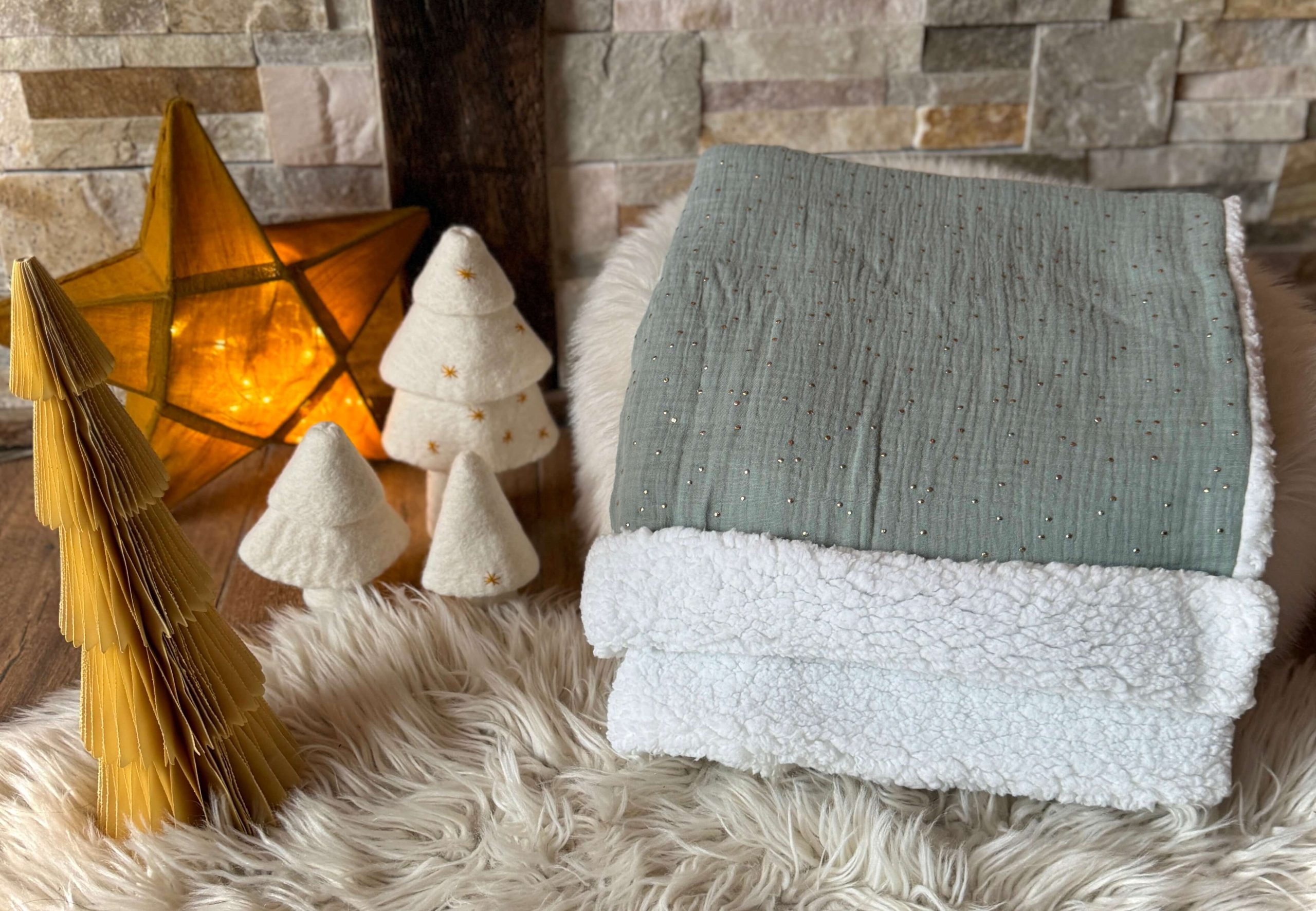 Soyez le premier à laisser votre avis sur “Couverture Double Gaze à Pois Dorés / Vert De Gris”
