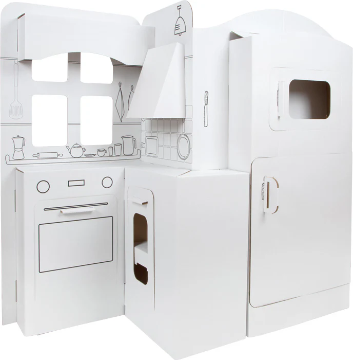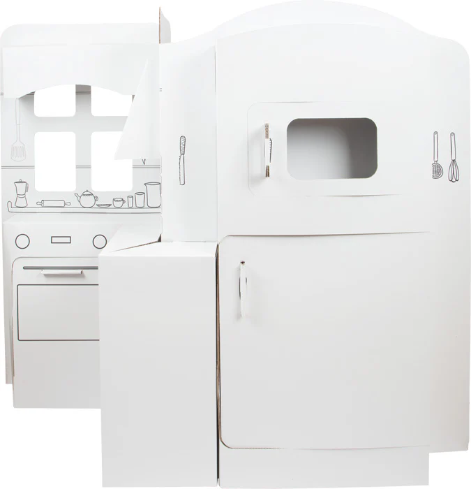 Cette grande cuisine de jeu en carton solide offre aux petits chefs de cuisine un espace d’imagination ! Après assemblage, elle peut être conçue individuellement à l’aide de crayons et pinceaux.