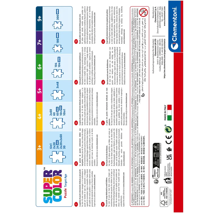 Depuis toujours sensible au problème de l’écologie, Clementoni utilise beaucoup de matériaux recyclés, évitant l’emploi de composants polluants. Made in Italy.