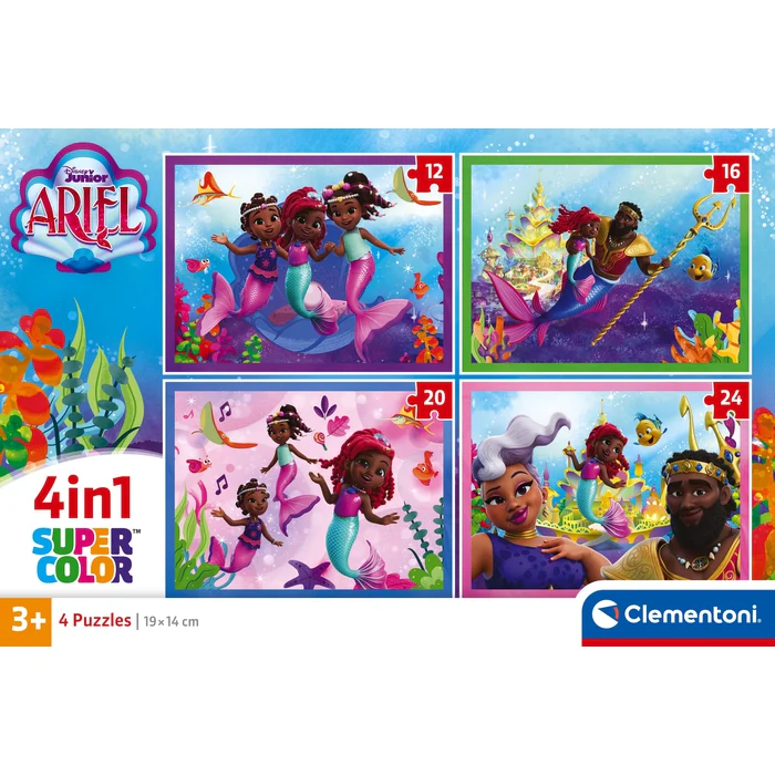 Contient : 1 puzzle de 12 pièces, 1 puzzle de 16 pièces, 1 puzzle de 20 pièces et 1 puzzle de 24 pièces.