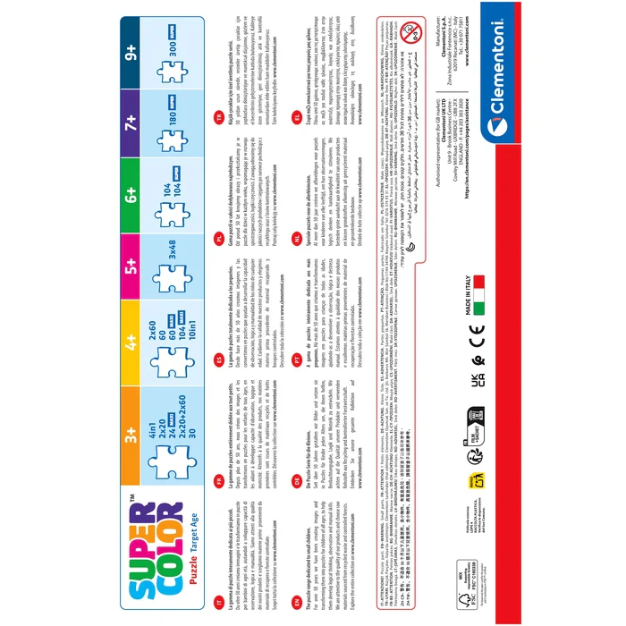 Depuis toujours sensible au problème de l’écologie, Clementoni utilise beaucoup de matériaux recyclés, évitant l’emploi de composants polluants. Made in Italy.