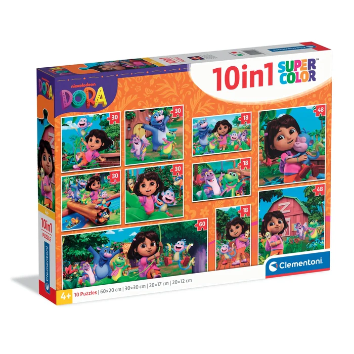Un coffret de puzzles 10 en 1 avec 10 images colorées différentes.