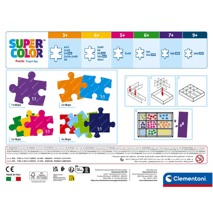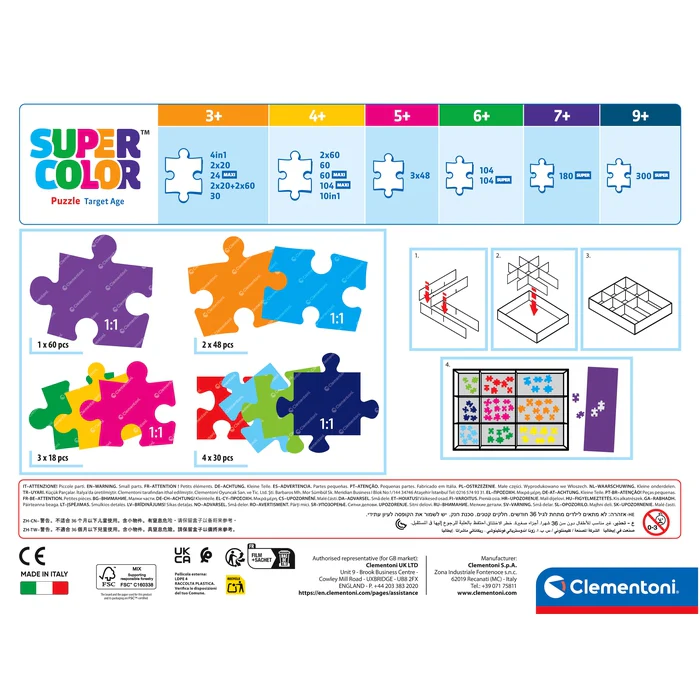 Contient : 3 puzzles de 18 pièces, 4 puzzles de 30 pièces, 2 puzzles de 48 pièces et 1 puzzle de 60 pièces.