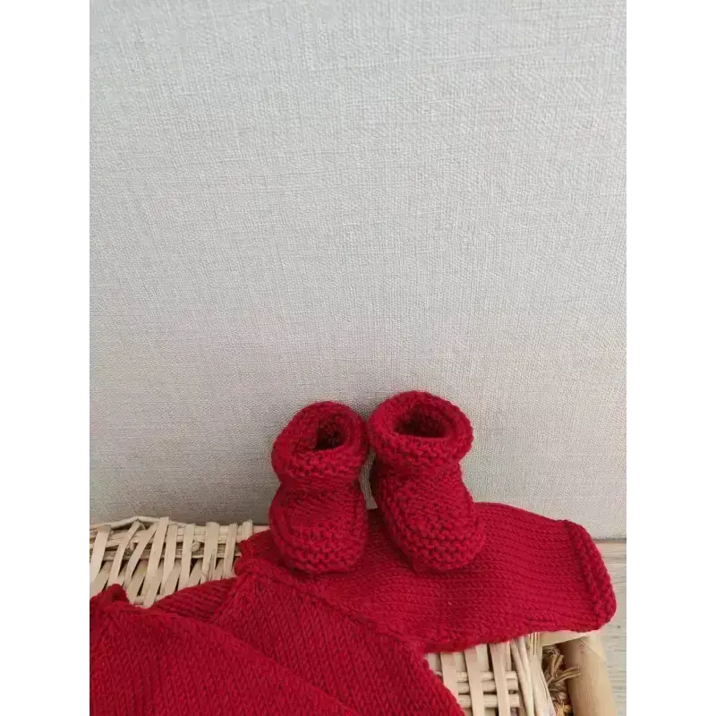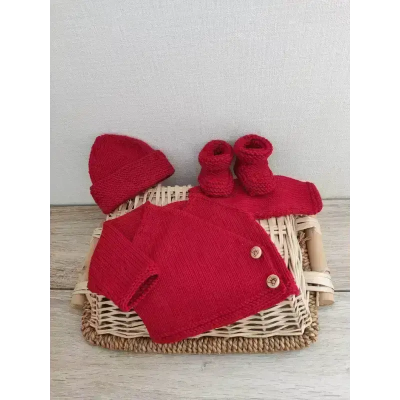 Notre kit naissance est délicatement composé de trois pièces essentielles, tricotées avec passion et précision pour offrir à votre bébé un confort et une douceur inégalés :