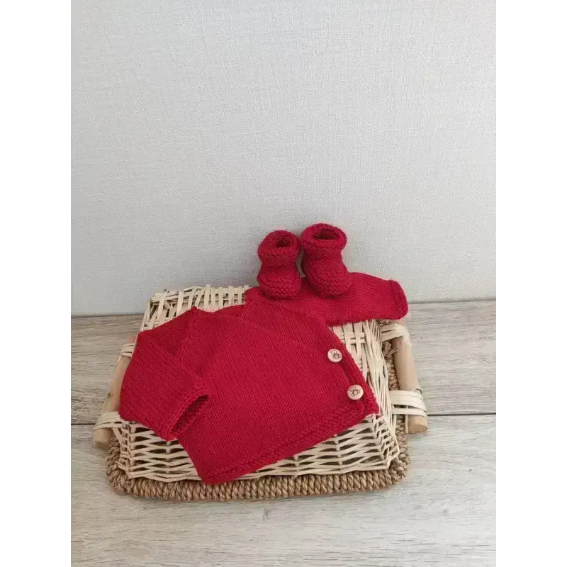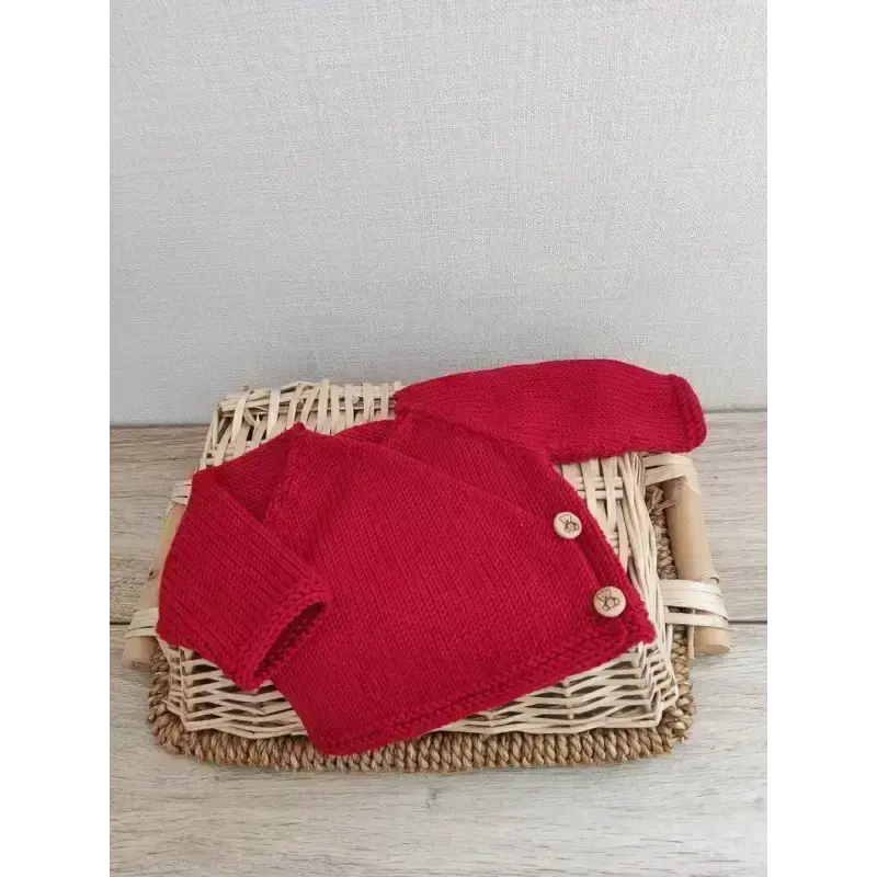 La Brassière Bébé Cache-Cœur en Pure Laine Mérinos Rouge :