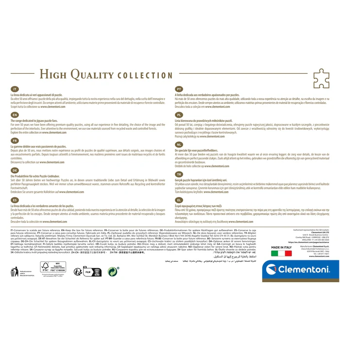 Les images les plus attrayantes, une grande variété de formats et une qualité signée Clementoni pour une gamme qui est devenue une référence pour les férus de puzzles du monde entier.