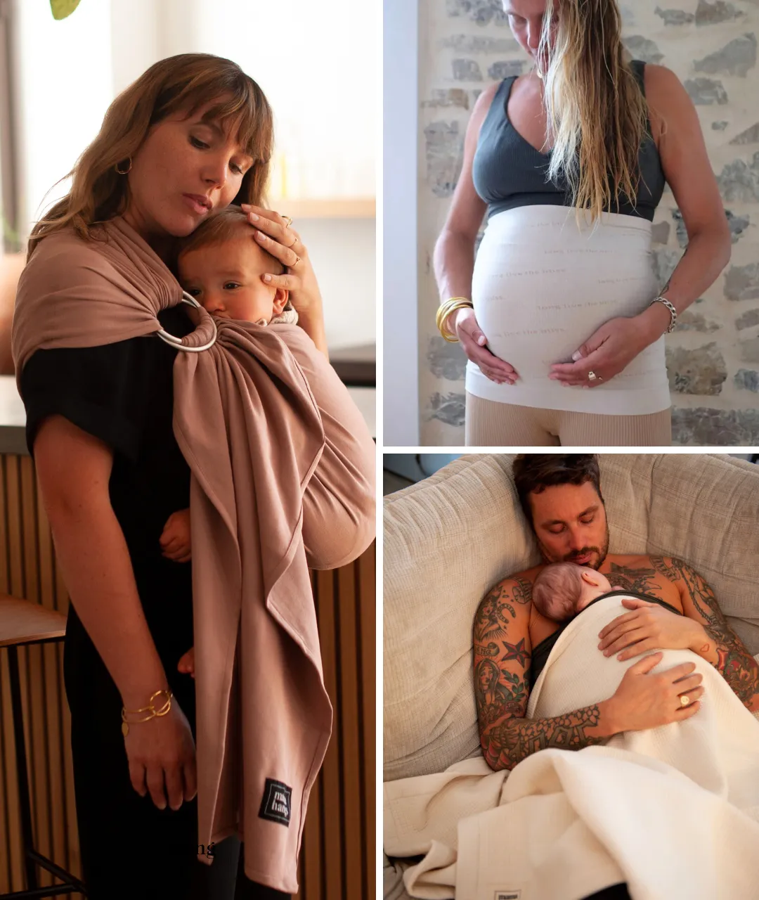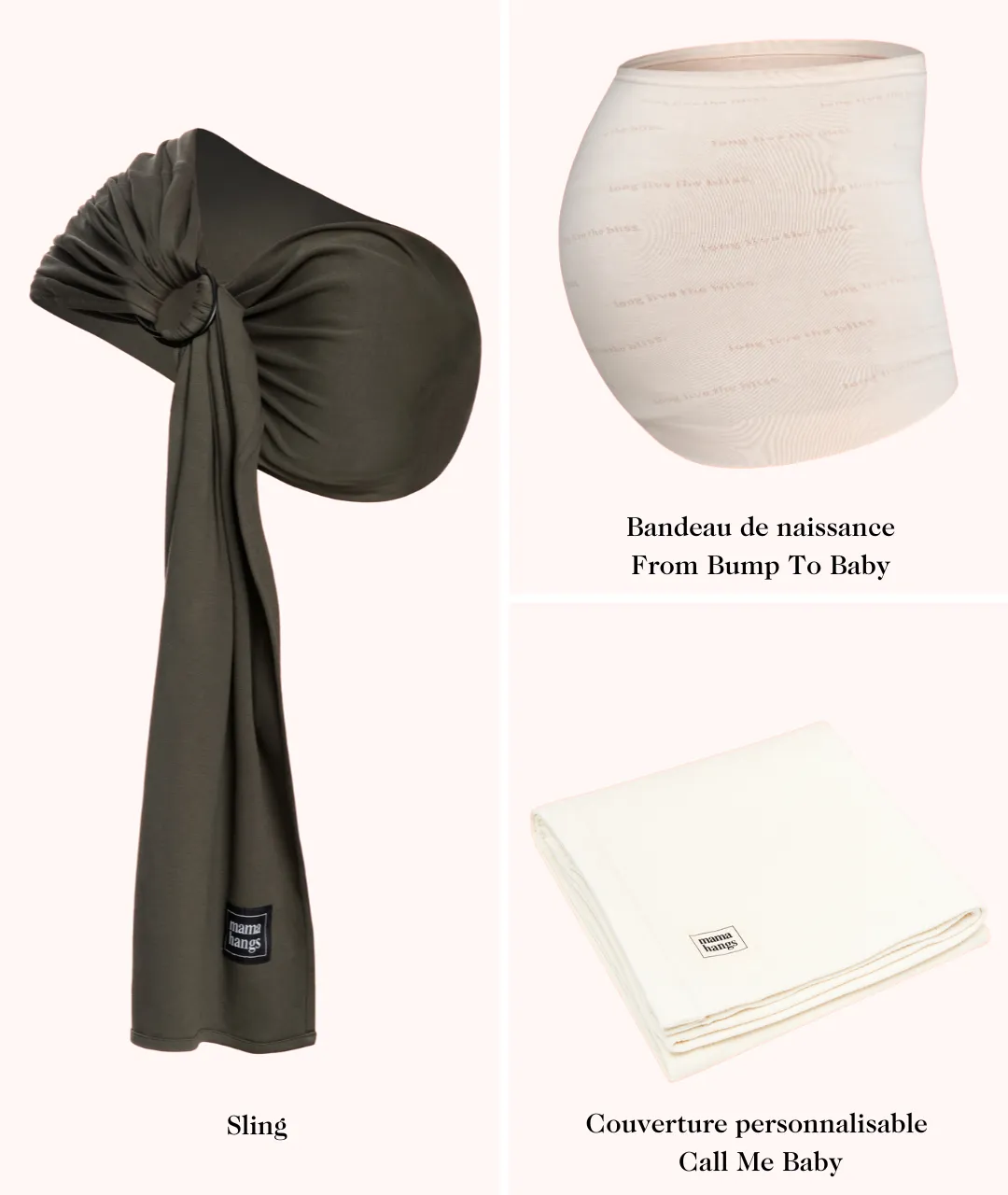 Découvrez le coffret de naissance Mama Hangs, un ensemble idéal pour les jeunes parents. Composé d’un bandeau de peau à peau, d’un couverture personnalisable et d’un Sling Mama Hangs, il allie confort, praticité et style pour accueillir bébé avec tendresse.