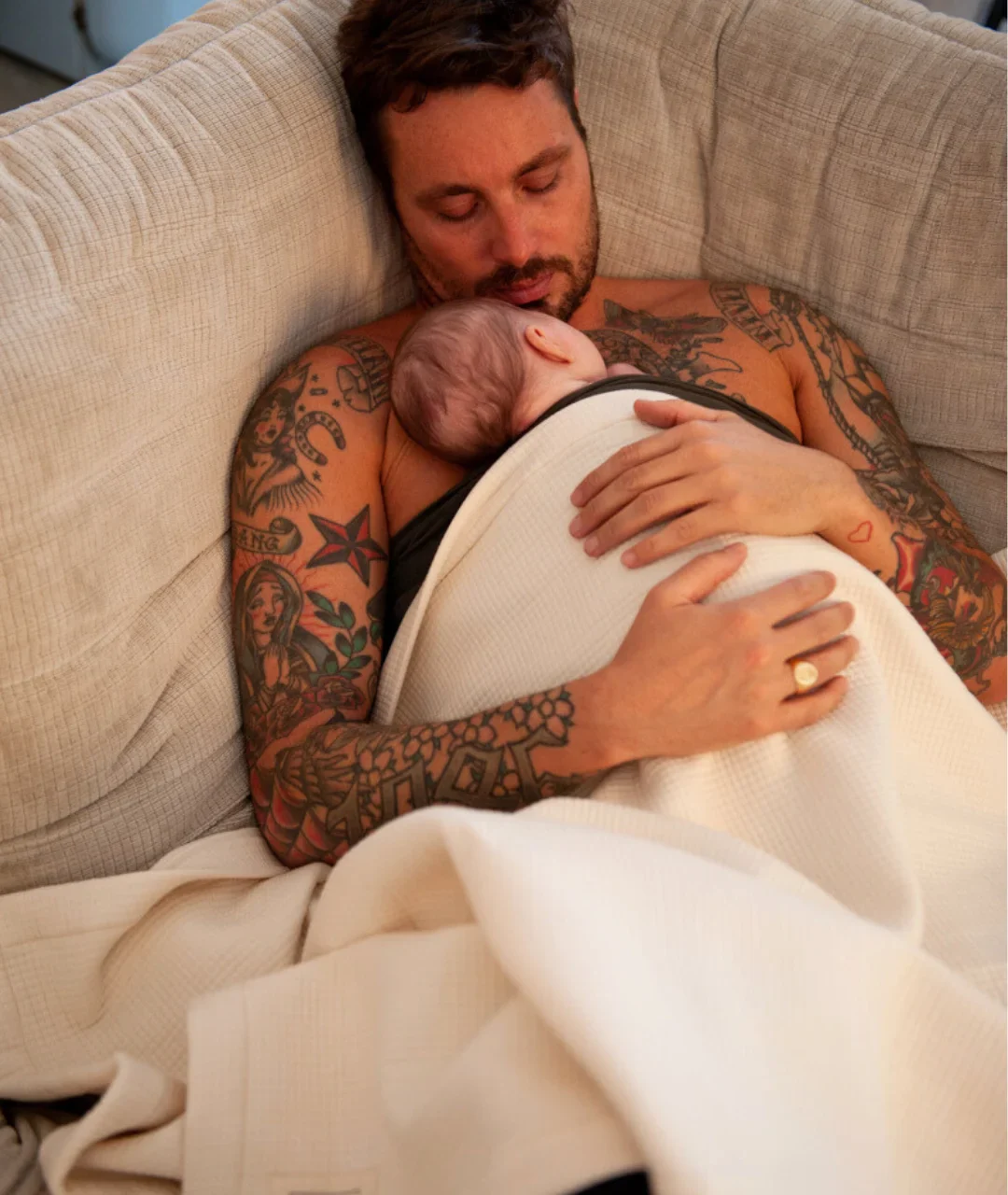 La couverture « Call Me Baby » est disponible dans une sélection de quatre coloris intemporels : bleu marine, rose poudré, gris taupe et doré. À vous de faire votre choix !