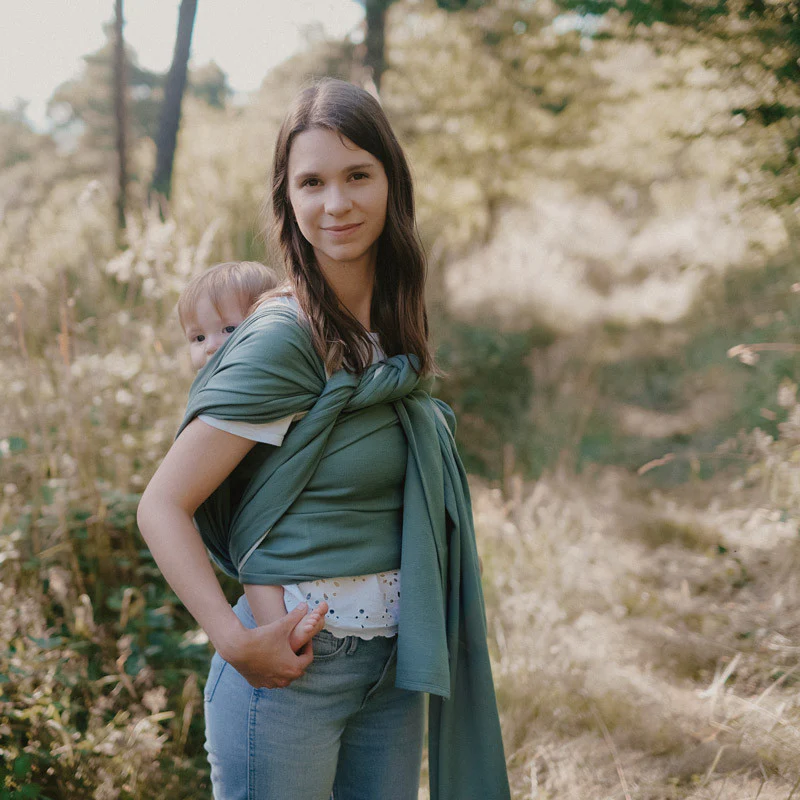 Le Sling est une écharpe à anneau, sans nœuds qui s’installe naturellement sur l’épaule.