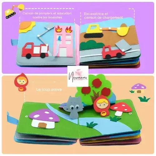 Interactivité et Découverte : Chaque page de ce livre en tissu montessori est une aventure en soi, avec des thèmes variés et des visuels 3D flexibles et amovibles. Votre enfant sera plongé dans des scènes de la vie quotidienne, enrichies par des histoires fascinantes. Cette exploration stimule non seulement les compétences cognitives mais aussi la coordination motrice.