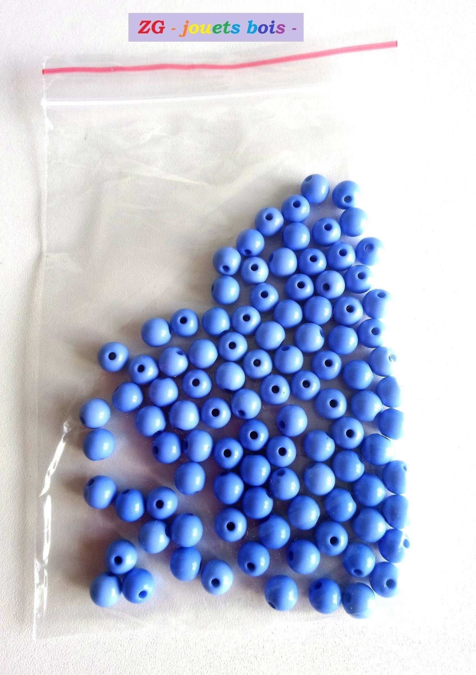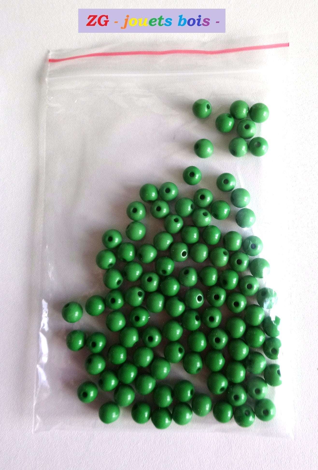 LOT de 100 perles acrylique Montessori, diamètre 8mm, apprentissage sensoriel, couleur au choix, bleu, vert ou rouge (perçées 1.5mm)