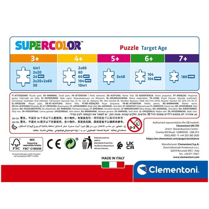 Depuis toujours sensible au problème de l’écologie, Clementoni utilise beaucoup de matériaux recyclés, évitant l’emploi de composants polluants. Made in Italy.
