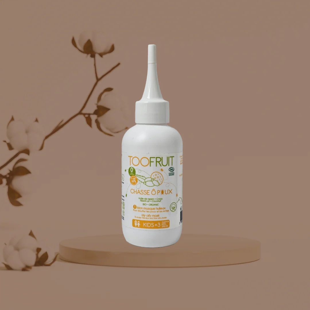 Le masque huileux Chasse Ô Poux certifié bio de la marque TOOFRUIT est un remède naturel efficace pour se débarrasser des poux et des lentes sans agresser la chevelure de votre enfant. Composé à 99% d’ingrédients d’origine naturelle, il convient à tous les types de boucles. Chez Curly Family, nous avons choisi de proposer ce produit de qualité, respectueux de la santé de vos enfants et de l’environnement.