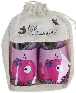 Chaque paire de chaussons en cuir souple est livrée dans un sachet en toile de jute naturelle et réutilisable.