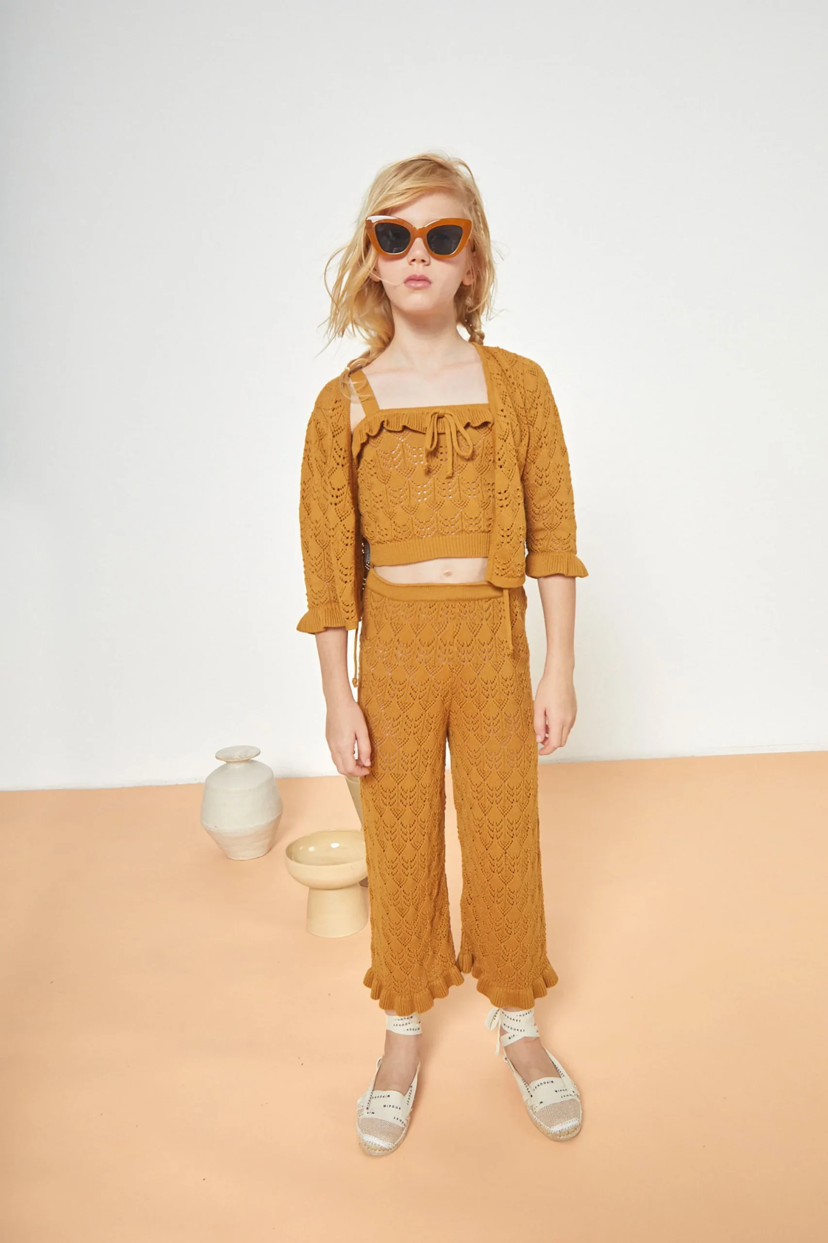 Le plus beau des pantalons d’été ! Coup de foudre pour son style bohème, ses motifs en crochet et ses petits volants. Un plaisir à porter avec sa taille élastique et sa coupe droite hyper confortable. Vous pouvez l’associer au Pull ajouré Carola crème dont les détails caramel du col rappellent parfaitement sa couleur. Existe aussi une version crème à tomber 😉