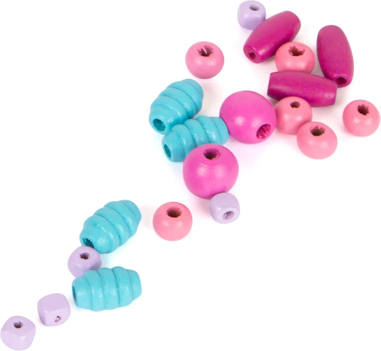 Les perles sont en bois massif, lisses, résistantes et sans substances toxiques. Les couleurs / vernis sont adaptés aux enfants.