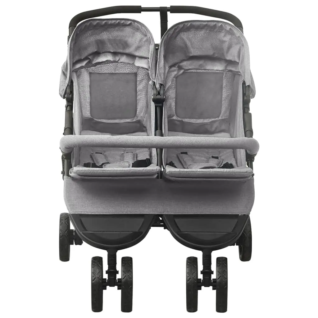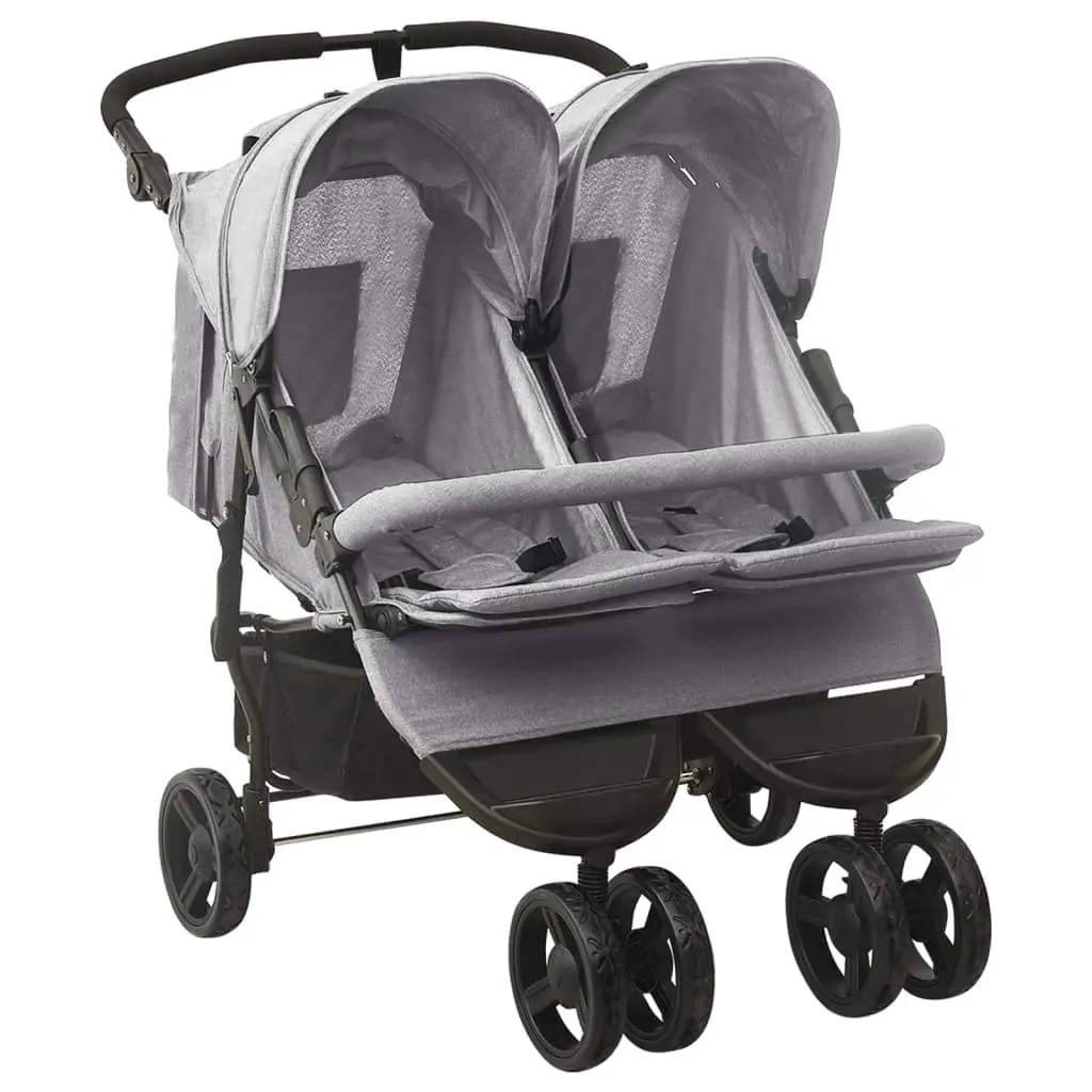 Avec cette poussette double pratique, vous pouvez emmener vos bébés se promener dans le parc, aller faire les achats, etc. La poussette double dispose d’un cadre en acier, ce qui la rend robuste et durable. Le dossier et le repose-pied sont réglables en plusieurs positions, offrant un maximum de confort pour vos enfants. L’auvent rond les protège de manière fiable de la lumière directe du soleil. De plus, le pare-chocs avant offre une sécurité optimale, les empêchant de tomber. Le panier pratique inclus est idéal pour ranger les articles pour bébé. Cette poussette double est pliable pour un rangement et un transport faciles.