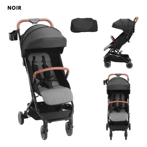 Cette poussette canne est équipée d’un cadre robuste mais léger, pour un usage facile tout au long de la journée. Elle se plie et se déplie en quelques secondes, ce qui la rend particulièrement pratique pour les parents actifs. Le siège est confortable et spacieux, doté d’un harnais ajustable pour assurer la sécurité de bébé à tout moment. Le tissu est non seulement élégant avec sa couleur noire, mais aussi durable et facile à entretenir.