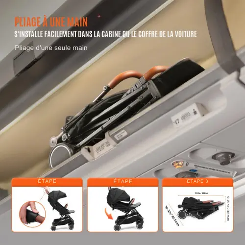 - Pliage à une main : le pliage et le rangement peuvent être complétés en une seule traction, avec des dimensions de 18,3 x 22,2 x 9,2 pouces / 465 x 565 x 233 mm, adapté au stockage et à l’utilisation à Disneyland, dans les coffres à bagages des avions et dans les coffres de voiture.
