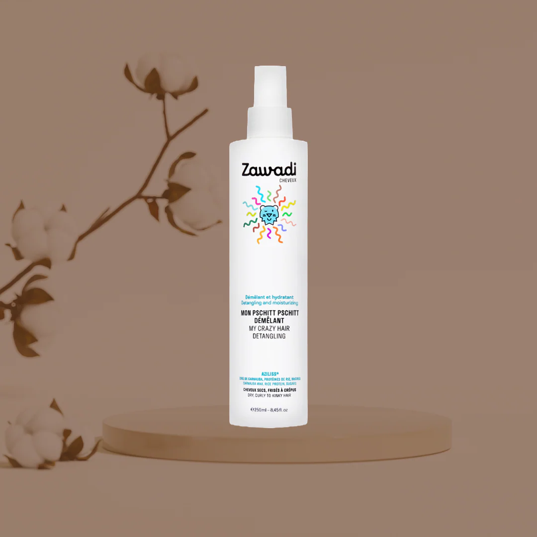 Véritable brume démêlante pour les cheveux secs et difficiles à démêler, Le Pschitt Pschitt Démêlant Zawadi protège l’hydratation naturelle des cheveux. Il facilite le coiffage et garde les cheveux doux.