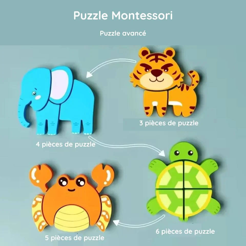 🐾 Stimule la reconnaissance des formes et des couleurs – Chaque puzzle est conçu pour aider l’enfant à associer les pièces aux images correspondantes.