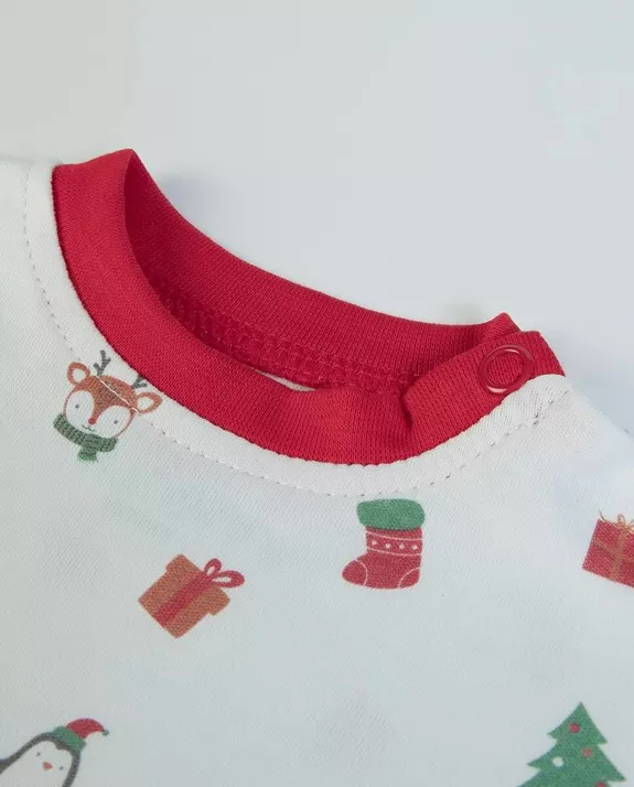 Ce pyjama 2 pièces en coton accompagne bébé pendant les nuits d’hiver. Léger, doux et agréable, il garde la peau au chaud sans jamais étouffer. Une tenue idéale pour dormir paisiblement… ou pour traîner en pyjama le matin de Noël.