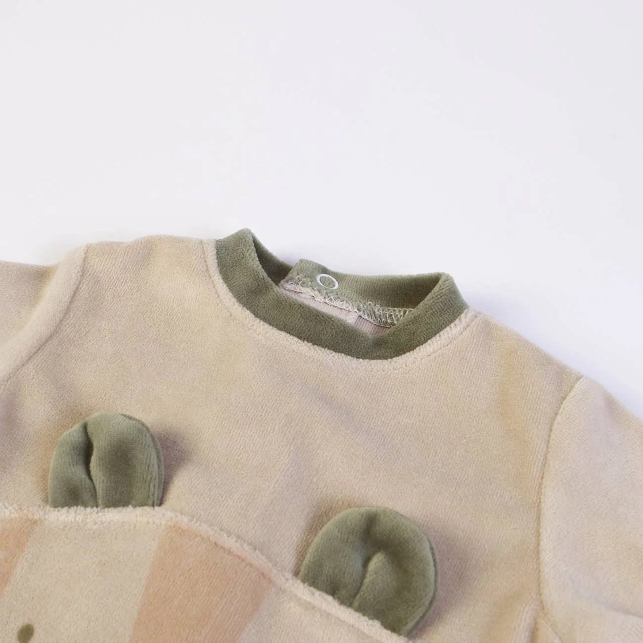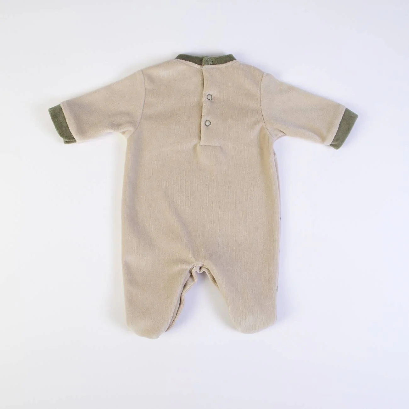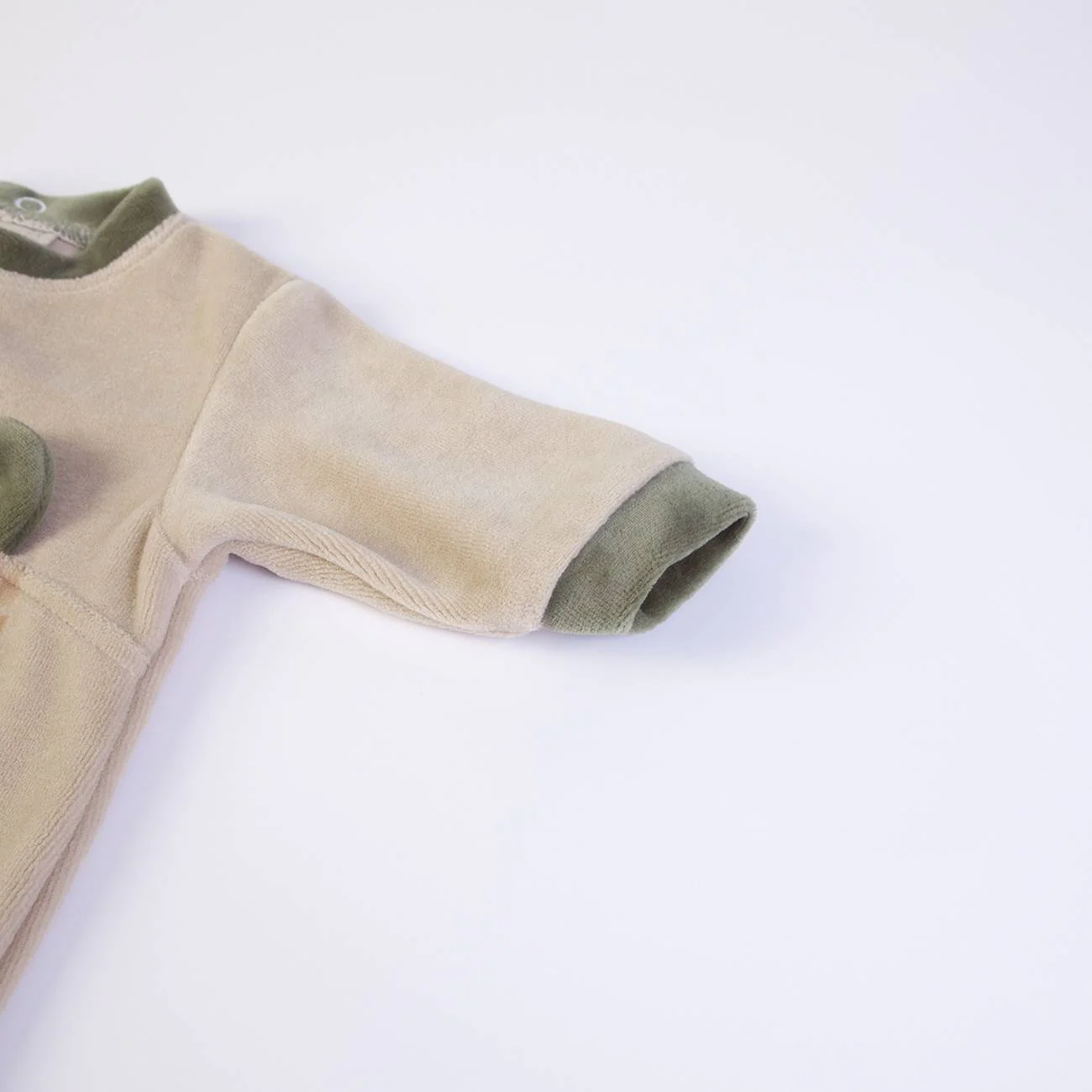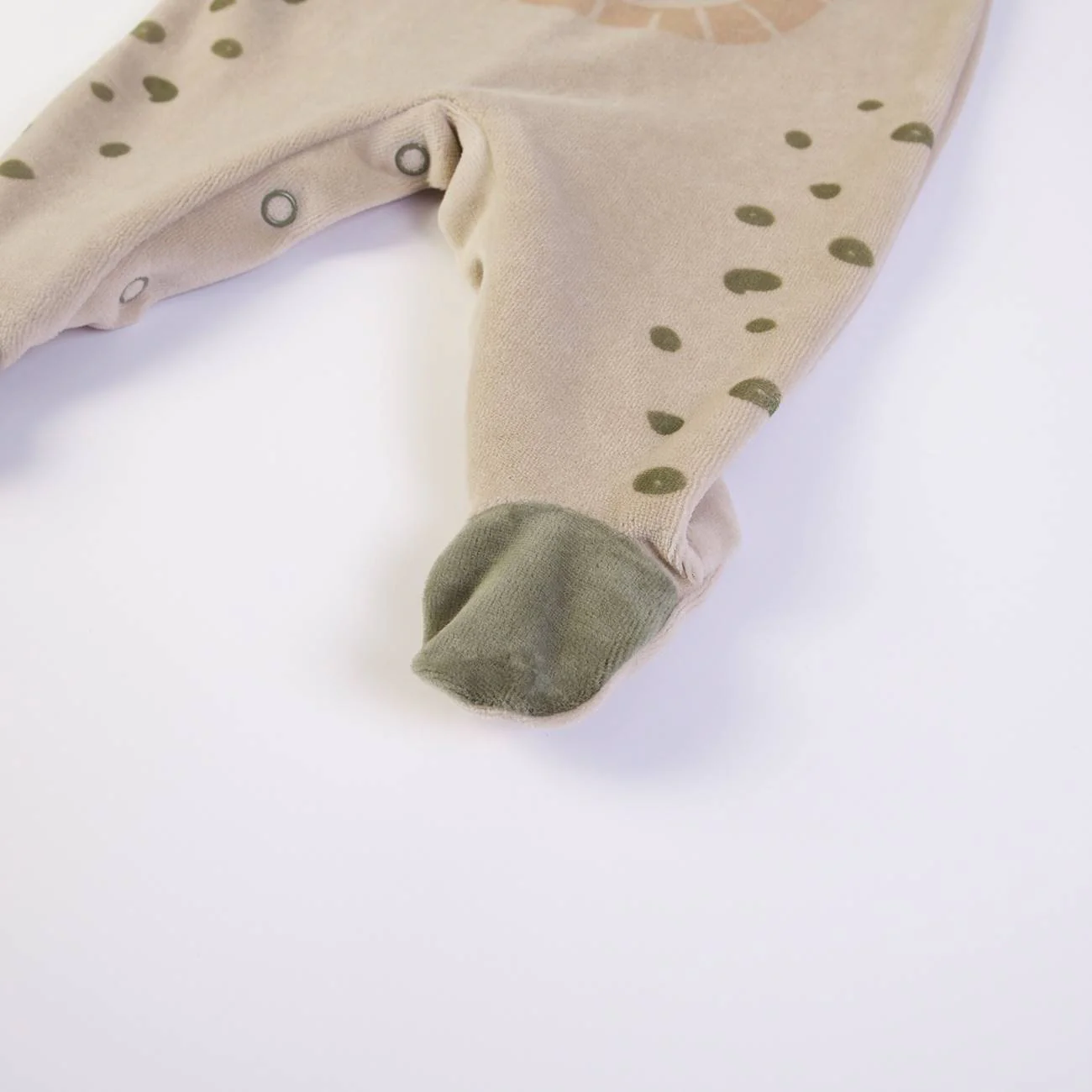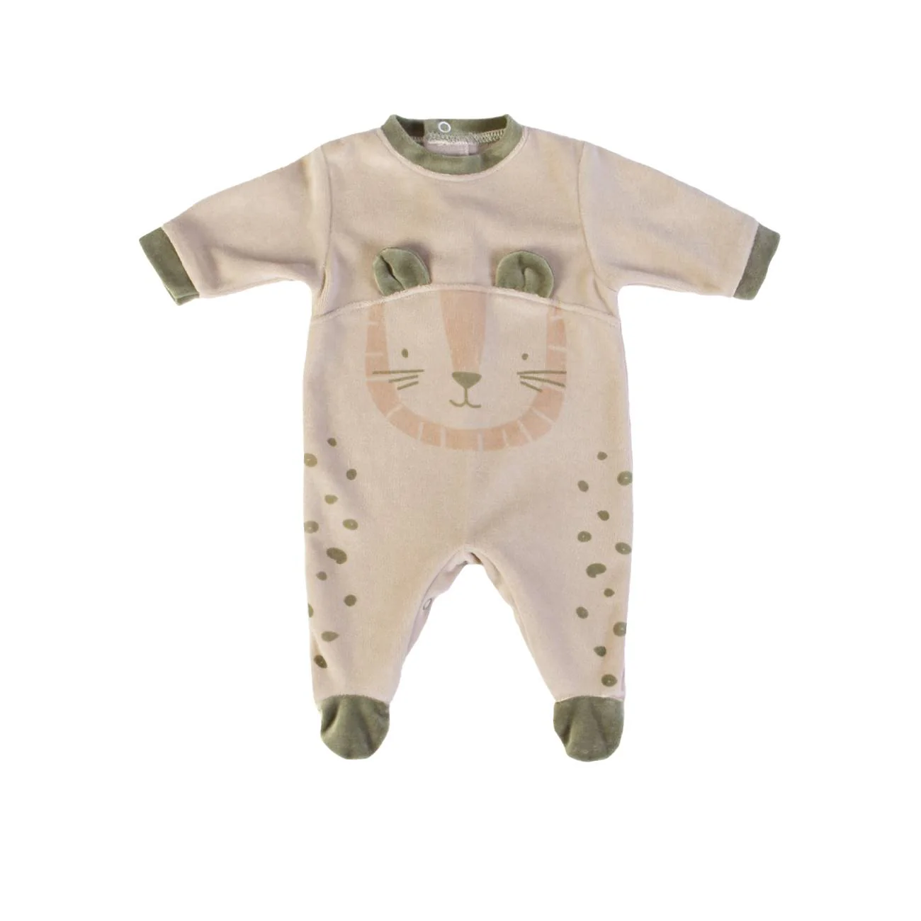 Qui a dit que dormir devait être sérieux ? Avec cette grenouillère en velours tout doux, votre bébé devient le petit roi de la savane… prêt à explorer ses rêves avec confort et style. Beige et vert, le combo parfait pour des aventures tout en douceur.