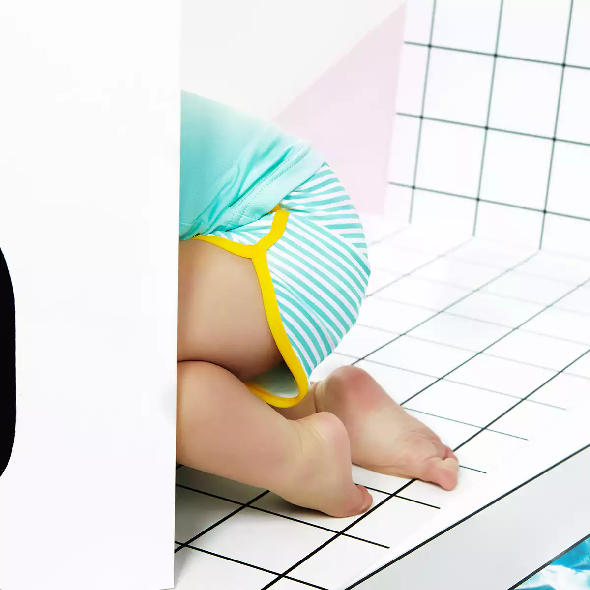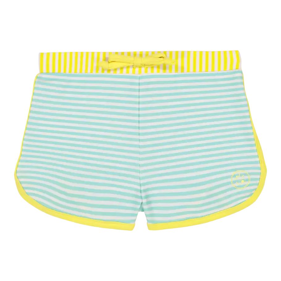 Labelisé Oeko-Tex et conçu en matériaux Anti-UV non chimiques le short Screech protège tout en douceur la peau fragile des tout-petits (sans troubler les poissons).