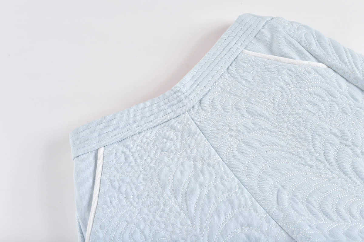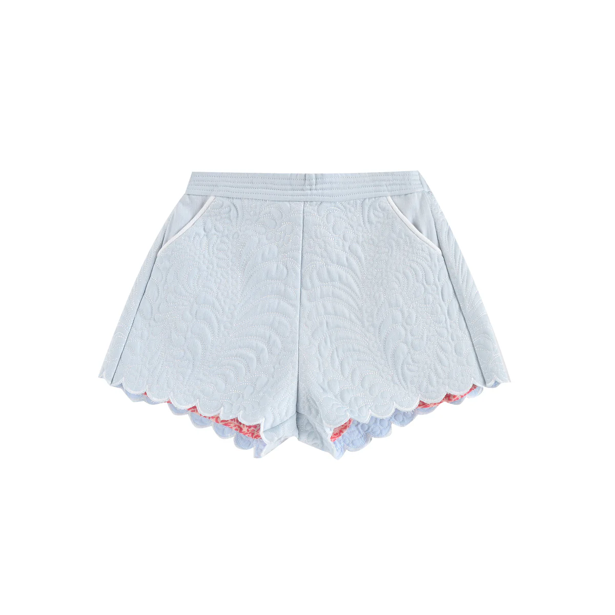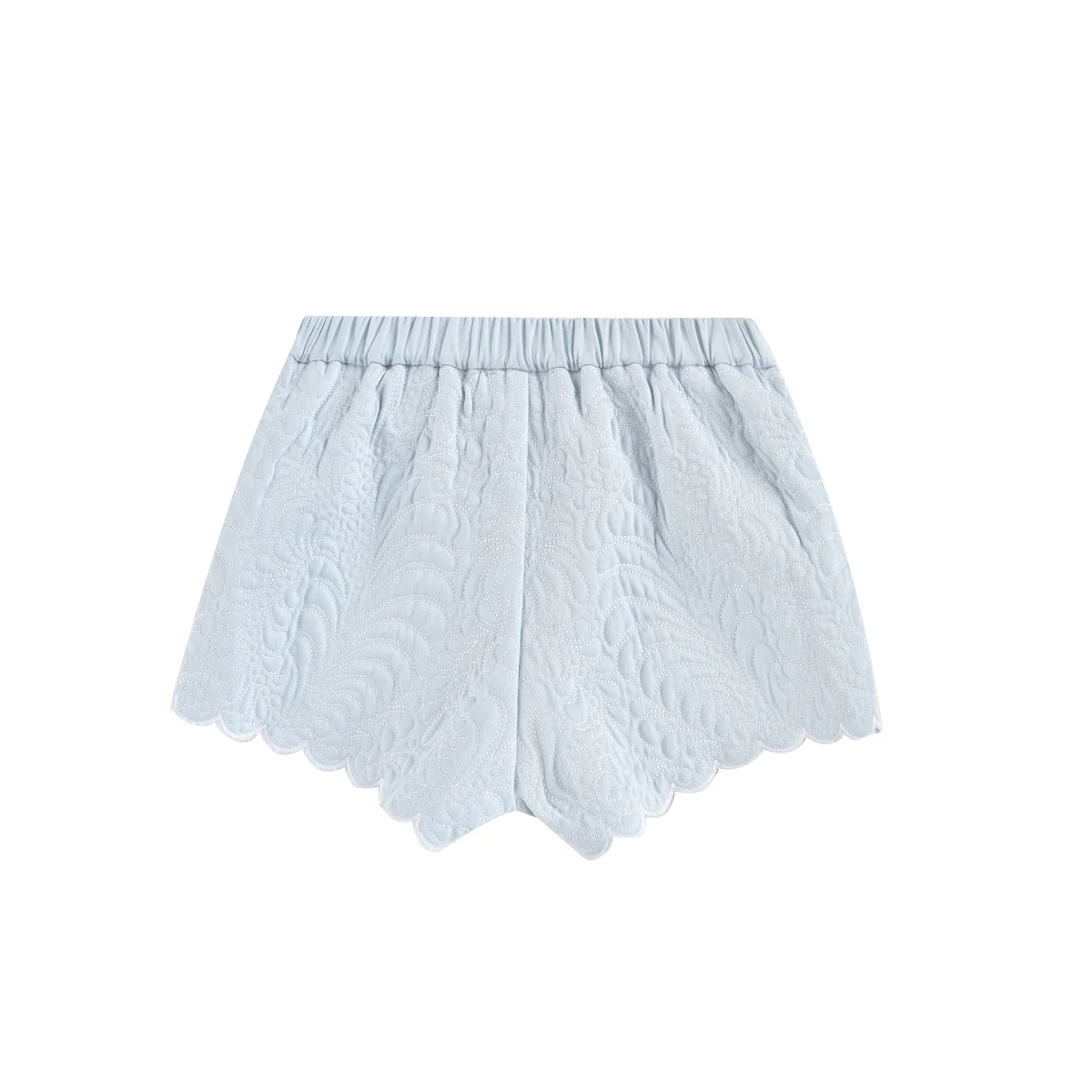 Élégant short en chambray de coton bleu pastel. Sur la jetée ou sur une plage de galet, il est à glisser dans la valise des vacances. Il s’associe à l’infini pour en profiter tout l’été ! On a craqué pour l’originalité de son motif brodé d’inspiration boutis, ses finitions festonnées et brodées sur le bas. Une belle pièce qui joue sur de subtiles contrastes de couleurs dans les petits détails au niveau : des surpiqûres, du biais des poches latérales ou encore sur sa belle doublure en coton motif Pink Stamp. Taille élastiquée à l’arrière.