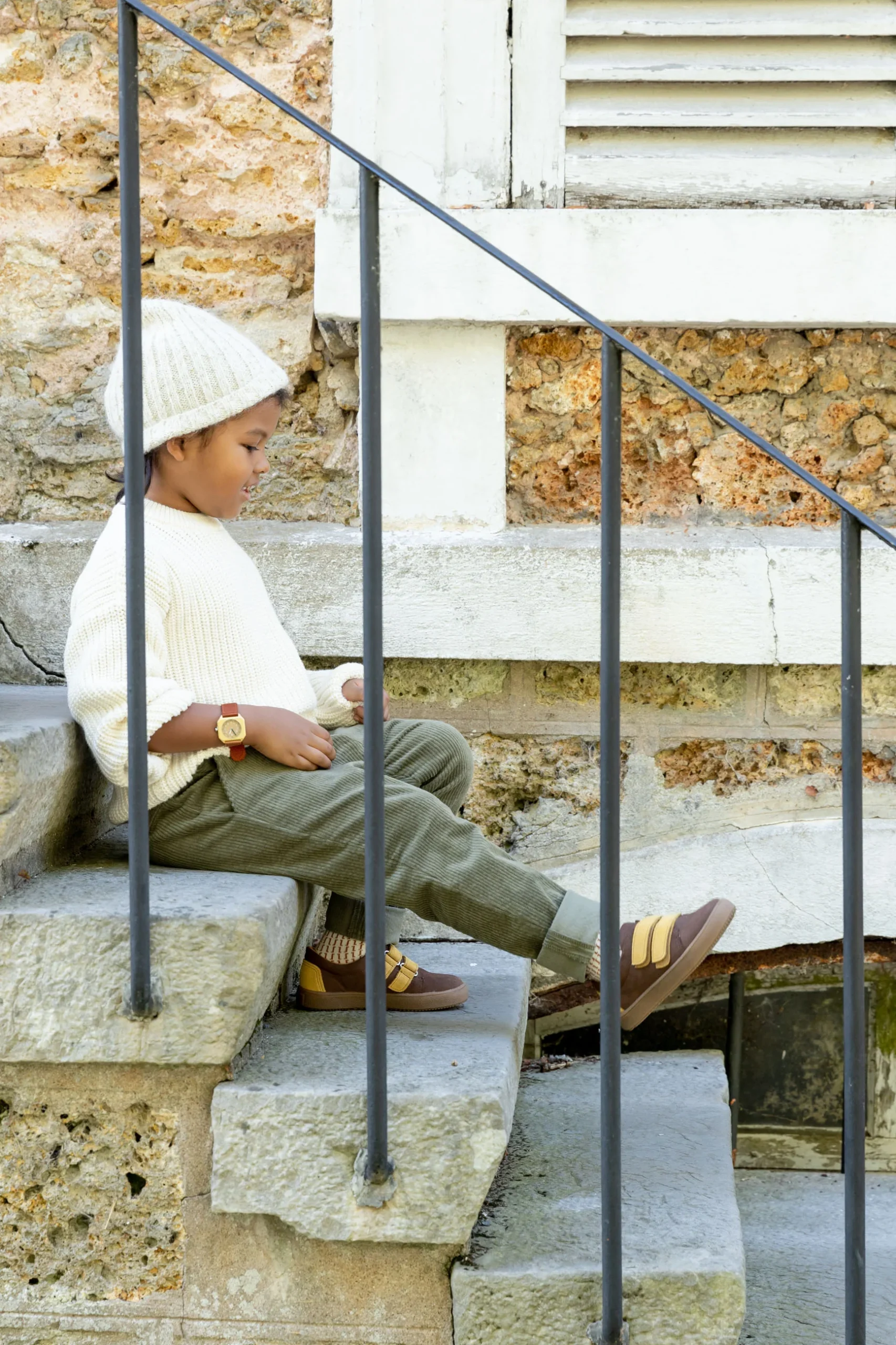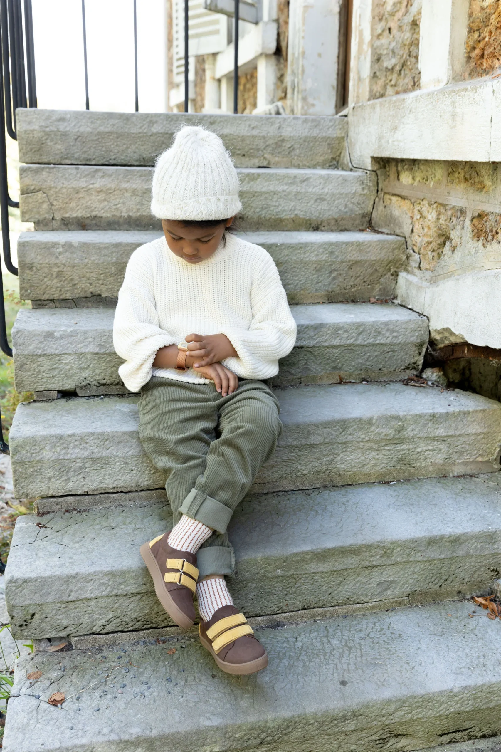 Les sneakers sont montées sur une semelle en caoutchouc légère et souple. Elles sont pratiques grâce à leurs brides en velcro ajustables au dessus du pied.