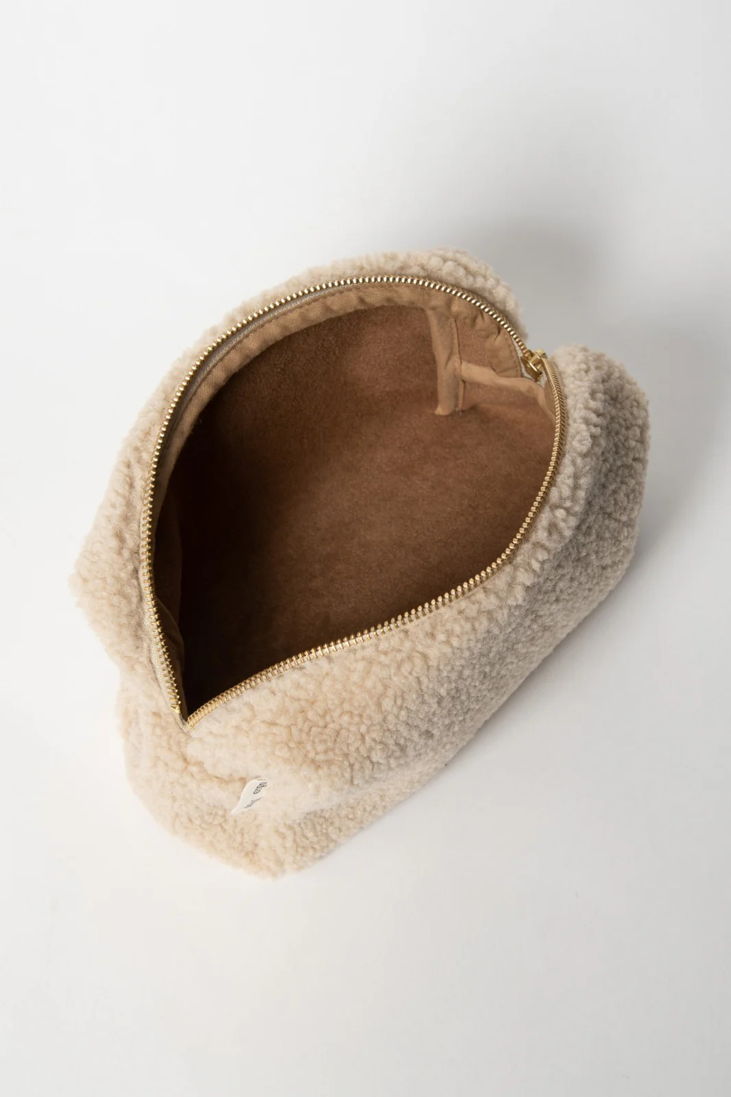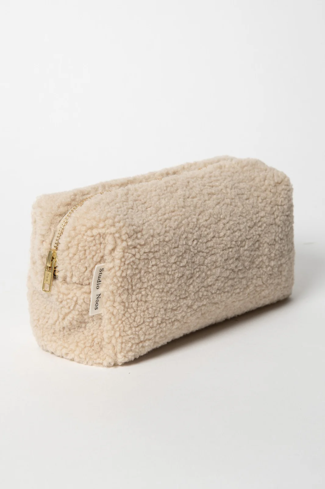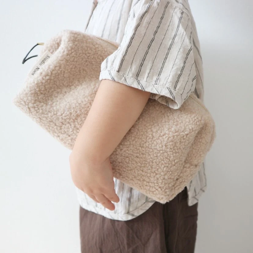 Trousse couleur crème en matière moumoute douce avec zip doré. Sa contenance vous permettra d’y placer quelques couches ou lingettes ainsi que les produits de toilette de bébé.
